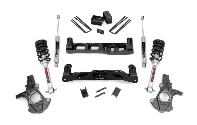 Conquer the Trail with Confidence: Transform your truck's stance and off-road potential with Rough Country's 5-Inch Lift Kit. Designed to accommodate up to 33-inch tires on factory 18 or 20-inch wheels, this system delivers the aggressive, leveled appearance truck owners crave without compromising your factory fitment. Featuring a high-clearance crossmember design, this kit dramatically improves ground clearance so you can take on rugged terrain with confidence and style.Precision Engineering Meets Ultimate Performance: Built for durability and ride quality, this kit includes premium N3 Series shocks with application-specific valving for exceptional performance on and off the pavement. Want even more? Upgrade to our N3 Loaded Struts for simplified installation, enhanced suspension response, and a smoother ride. Heavy-duty fabricated rear blocks replace weaker cast components for unmatched strength and longevity, while reusing the factory front skid plate preserves your underbody protection at no extra cost.Zero Compromises, All Performance: Thanks to advanced CAD engineering and laser-cut precision materials, this lift kit ensures a perfect fit while maintaining full compatibility with your factory drivetrain and exhaust no modifications required. It's the smart upgrade that combines rugged performance with hassle-free installation.Installation Made Easy: With a straightforward 8-10 hour install time and detailed step-by-step instructions, getting your truck lifted and trail-ready is easier than ever. Plus, every Rough Country lift kit is backed by our limited lifetime replacement warranty, protecting you against structural and workmanship defects. Go further, stand taller, and ride stronger with Rough Country.