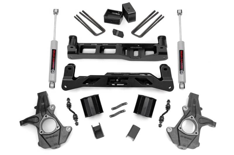 Aggressive Lift, OEM Compatibility: Transform your 2WD Chevy/GMC 1500 with Rough Country's 5-Inch Lift Kit, delivering a head-turning, aggressive profile while maintaining OEM compatibility. This system lets you run 33-inch tires on factory 18 or 20-inch wheels-no extra modifications needed. The result? A leveled, front-to-rear stance that boosts both curb appeal and on-road confidence.Engineered for Performance and Clearance: Designed with a high-clearance crossmember and heavy-duty fabricated blocks, this kit is built for superior off-road capability and long-term durability. The precision laser-cut components ensure a perfect fit and a seamless installation using advanced CAD technology.No Modifications, No Headaches: Enjoy a hassle-free install with zero drivetrain, differential, or exhaust modifications needed. The factory front skid plate is reused, saving you money while preserving your truck's underbody protection.Ride Quality Meets Rugged Strength: Equipped with Rough Country's premium N3 Series shocks, this system offers application-specific valving for excellent ride quality both on and off the road. Take it further with the optional N3 loaded struts upgrade enhancing suspension performance, simplifying installation, and eliminating the need for traditional spacers.Built to Last: This kit doesn't just lift it levels, protects, and performs. Backed by Rough Country's Limited Lifetime Replacement Warranty, it's a confident upgrade for any daily driver or weekend warrior.