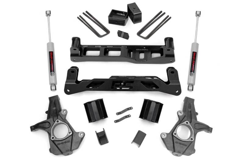 Aggressive Lift, OEM Compatibility: Transform your 2WD Chevy/GMC 1500 with Rough Country's 5-Inch Lift Kit, delivering a head-turning, aggressive profile while maintaining OEM compatibility. This system lets you run 33-inch tires on factory 18 or 20-inch wheels-no extra modifications needed. The result? A leveled, front-to-rear stance that boosts both curb appeal and on-road confidence. Engineered for Performance and Clearance: Designed with a high-clearance crossmember and heavy-duty fabricated blocks, this kit is built for superior off-road capability and long-term durability. The precision laser-cut components ensure a perfect fit and a seamless installation using advanced CAD technology.No Modifications, No Headaches: Enjoy a hassle-free install with zero drivetrain, differential, or exhaust modifications needed. The factory front skid plate is reused, saving you money while preserving your truck's underbody protection.Ride Quality Meets Rugged Strength: Equipped with Rough Country's premium N3 Series shocks, this system offers application-specific valving for excellent ride quality both on and off the road. Take it further with the optional N3 loaded struts upgrade enhancing suspension performance, simplifying installation, and eliminating the need for traditional spacers.Built to Last: This kit doesn't just lift it levels, protects, and performs. Backed by Rough Country's Limited Lifetime Replacement Warranty, it's a confident upgrade for any daily driver or weekend warrior.