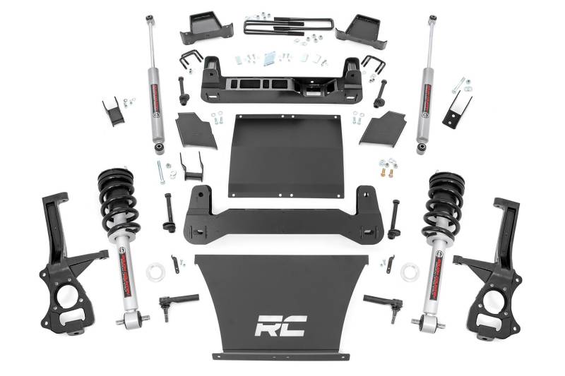 GMΓÇÖs 2019 1500 features an impressive all-new design thatΓÇÖs built from the ground up, with aggressive angles and head-turning stylings that fit in beautifully when transformed with Rough CountryΓÇÖs 4in Suspension Lift.This kit lifts and levels your vehicle for a commanding stance and enough clearance to run 35x12.50 tires on 10in wide wheels. Rough Country has engineered this kit to provide optimal suspension geometry while retaining the factory ride quality, giving you enhanced off-road capabilities without sacrificing the handling and smooth ride that makes this truck so impressive.Rough CountryΓÇÖs 6in Suspension lift retains the stock track width, allowing for up to a 10in wide wheel with 4.5in backspacing. Each kit includes front and rear crossmembers and a skid plate for enhanced chassis strength as well as cast steel knuckles for incredible durability and performance. Includes Rough CountryΓÇÖs Lifetime Replacement Guarantee! \ \