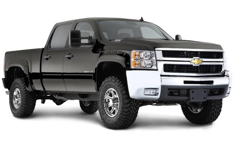 Fender Flares Pocket Style-Color Graphite Metallic Smooth Finish 4 Pc Bushwacker's rugged, iconic Pocket Style Fender Flares allow for more tire coverage and more clearance for trucks and SUVs while protecting the vehicle from dirt and debris. These flares are now available pre-finished to match the paint on your new Chevrolet Silverado, plus they have the edge trim and stainless steel hardware pre-installed for quick and easy installation and a perfect fit . Made from sturdy Dura-Flex 2000 material, these flares are warp-resistant and tailor made for each application. Despite their bolted-on appearance, these flares install easily with minimal drilling for a secure fit. And since they're ready to install out of the box, there's no waiting on paint, and no hassle with installation. Our OEM-quality finishes perfectly match the finish of new trucks and SUVs. Tire coverage varies with vehicle: 0.5 In.- 3 In. Whether on-road or off, our heavy-duty hardware holds the flares securely in place Made of durable, yet flexible Dura-Flex 2000 ABS material Installs easily with little to no drilling/trimming required -- all hardware is included