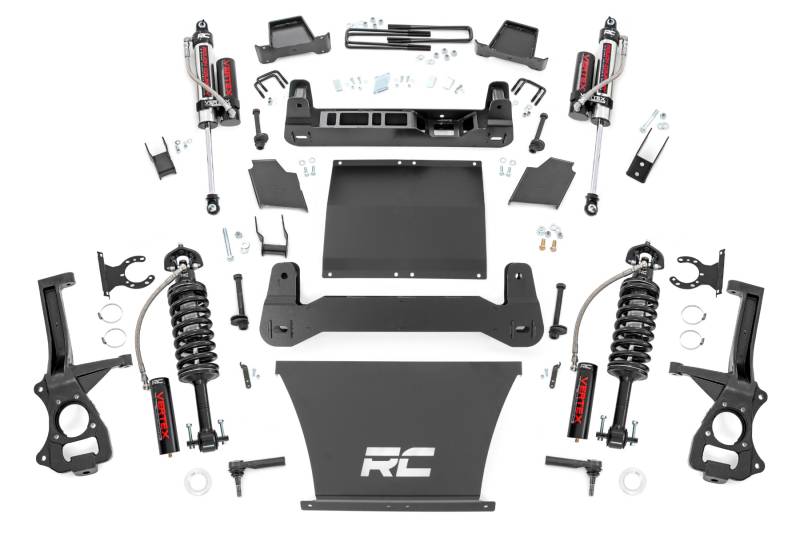 GMΓÇÖs 2019 1500 features an impressive all-new design thatΓÇÖs built from the ground up, with aggressive angles and head-turning stylings that fit in beautifully when transformed with Rough CountryΓÇÖs 4in Suspension Lift.This kit lifts and levels your vehicle for a commanding stance and enough clearance to run 35x12.50 tires on 10in wide wheels. Rough Country has engineered this kit to provide optimal suspension geometry while retaining the factory ride quality, giving you enhanced off-road capabilities without sacrificing the handling and smooth ride that makes this truck so impressive.Rough CountryΓÇÖs 6in Suspension lift retains the stock track width, allowing for up to a 10in wide wheel with 4.5in backspacing. Each kit includes front and rear crossmembers and a skid plate for enhanced chassis strength as well as cast steel knuckles for incredible durability and performance. Includes Rough CountryΓÇÖs Lifetime Replacement Guarantee! \ \