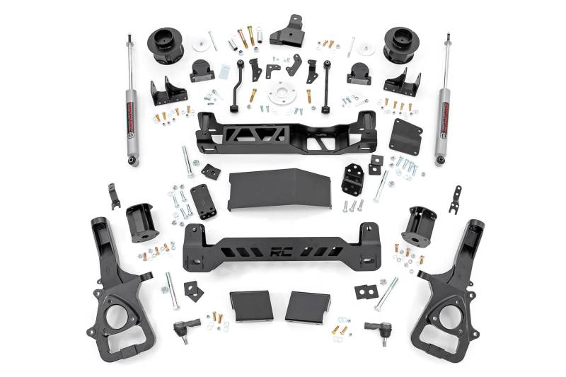 This all-inclusive kit delivers everything you need to give your truck an aggressive, commanding stance that perfectly complements the rugged design and upgraded styling of your RAM.Boosted Off-Road Performance: The 5in suspension lift provides increased ground clearance for superior off-road capability and confident obstacle navigation, letting you tackle tough terrain with ease.Balanced Ride Height: This lift kit levels the front of your vehicle with the rear, creating an even, aggressive stance while improving overall handling and ride stability.Aggressive Style Meets Durability: Equipped with high-quality front and rear crossmembers featuring a laser-cut RC logo, your truck gains a fierce yet streamlined look after installation. For true trailblazers, the kit includes rear N3 Nitrogen-charged shock absorbers, valved specifically to provide an ideal balance of on- and off-road performance. An upgraded outer tie-rod is also included, engineered to optimize turning precision, reduce bump steer, and accommodate a wider variety of wheel options.Performance Without Compromise: Best of all, you'll enjoy improved performance, the ability to run up to 35in tires, and enhanced undercarriage protection, all without sacrificing your truck's clean, factory-inspired appearance. The kit uses drop brackets to maintain proper suspension geometry, ensuring nothing hangs loosely or looks out of place.Backed by Rough Country's Limited Lifetime Replacement Guarantee, this suspension lift kit is your ticket to dominating every trail and turning heads everywhere you go.