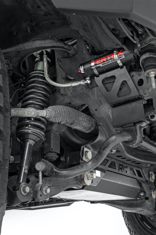 Unrivaled Performance: Unmatched Ride Quality. Experience the pinnacle of off-road control with Rough Country's 2.5 Vertex Reservoir Coilovers - precision-engineered to dominate any terrain while delivering a smooth, customizable ride.Built for the Extreme: Featuring a monotube design with an external remote reservoir, these nitrogen-charged coilovers increase oil capacity and damping sensitivity for superior heat dissipation and fade resistance. A massive 2.5-inch piston and 18mm chrome-hardened piston rod ensure maximum durability and performance in the toughest conditions.Engineered for Durability: A 3-stage seal system prevents dirt, debris, and fluid leakage, while the honed steel body and heat-treated alloy bearing extend longevity. The zinc-plated finish with a double clear coat and unbeatable salt spray resistance (over 400 hours) provide exceptional corrosion protection.Premium Design: These coilovers don't just perform - they turn heads. Featuring CNC-machined billet aluminum accents, a laser-etched RC logo, and premium "Vertex" decals, they combine high-end aesthetics with rugged reliability. They also feature a durable braided steel reservoir line and a laser-etched bracket system, ensuring a sleek, professional finish.Backed by Confidence: Covered by Rough Country's 3-year manufacturer's warranty, these coilovers offer long-term reliability and peace of mind for every adventure.Upgrade your ride today with Rough Country's 2.5 Vertex Coilovers - because performance, durability, and style should never be compromised.