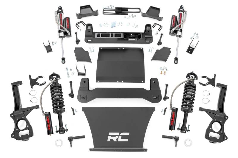 Explore New Heights: Chevy's fourth generation 1500 features an impressive all-new design that's built from the ground up, with aggressive angles and head-turning stylings that fit in beautifully when transformed with Rough Country's 6-inch Suspension Lift.Innovative Design and Construction: When changing a vehicle's suspension, the key to preserving ride quality is keeping the geometry of all suspension components as close to their factory angles as possible.This suspension kit combines the use of durable steel knuckles, differential brackets, and drop cross members to reduce cv angles and simulate factory angles all while achieving new heights. Featuring a set of upper strut spacers that offer uncompromised strength and rigidity, gaining lift height is no issue. Completing the rear of this suspension kit is a set of rear blocks, shocks, and u-bolts that allow you to retain factory-like geometry. This combined setup provides enough clearance to run 35" tires without additional modifications. We didn't want to limit you to one standard kit. Rough Country's 6-inch kit is configurable with all the shock options that we offer. This allows you to choose which shock series you want! Ranging from our nitrogen-charged N3 shocks to our Vertex reservoir shocks the power to choose is in your hands.Installation: With minor cutting and a strut compressor required to install, an estimated timeframe of 8-10 hours is recommended to complete this full installation. This full kit can be installed at home and can be completed efficiently and quickly!Limited Lifetime Replacement Warranty: Rough Country's 6" Suspension Lift Kit is backed with a limited lifetime replacement warranty towards manufacturer defects. As such, the product is protected from structural and workmanship damage after the date of purchase. With our industry-leading warranty give yourself peace of mind when using Rough Country's Suspension products!