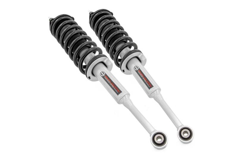 Do you want a great looking lifted truck that still rides like the day you bought it? Take your truck to new heights while preserving ride quality with Rough Country's N3 Performance Lifted Struts. Our Nitrogen charged, loaded struts add ride height to your truck while maintaining a smooth, factory-like ride. Each strut includes a pre-loaded coil for lightning-fast installation without the need for complicated strut disassembly.Rough Country's Performance N3 Struts feature a massive bore and chrome-hardened piston rod with leak-proof piston seal for exceptional durability during off-road use. Each strut is specifically tuned for its intended application and includes a variable dampening system for outstanding handling and control on all road conditions. These Performance N3 Struts offer improved tire contact with the road for increased stability and performance.These struts are engineered to fit perfectly on each intended application, and feature a pre-installed coil spring for easy installation without the need for strut disassembly. Simply remove your factory strut and replace with this easy, convenient system. The result is an increased ride height that mimics the factory responsiveness and handling of the OE strut. Includes a 3-year Limited Warranty.