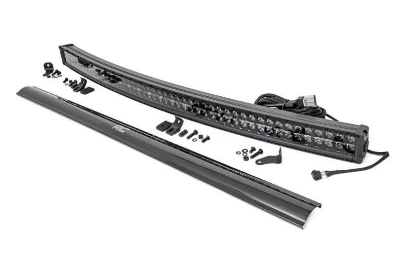 Command the Dark: Light up the night and stay on the trails longer with Rough Country's sleek 50-inch Curved Dual Row CREE LED Light Bar. This powerful light bar offers 43,200 lumens of illumination and 480 watts of energy-efficient output, all housed in a stylish, modern frame. Featuring 96 high-intensity 5-watt CREE LEDs, it delivers superior brightness and durability for any adventure.The sleek black panel design complements vehicles with black accents, such as grilles, wheels, bull bars, or steps. Designed for all-weather performance, this light bar comes with a durable die-cast aluminum housing, ensuring maximum strength and heat dissipation. It's also backed by an IP67 waterproof rating, providing reliable performance even in harsh conditions.This light bar contains 48 cool white daytime running LEDs for enhanced visibility and safety. Installation is made simple with the included premium, flat-wound wiring harness, complete with an on/off switch for easy operation. The light bar also features Rough Country's Light Bar Noise Silencers, designed to eliminate unwanted hums, whistles, and wind noise typically found in mounted LED light bars.This light bar includes both end mounts and adjustable base mounts, offering multiple mounting options for maximum versatility. A snap-on cover protects the lens, while Moisture Breather technology reduces moisture build-up inside the light. Plus, it's all backed by a 3-year warranty for peace of mind.