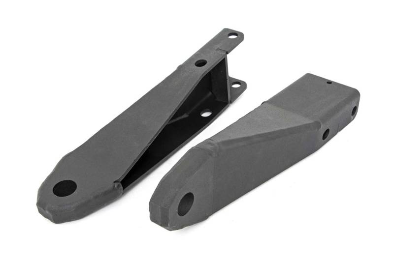 Give your vehicle an upgraded recovery option that offers a more aggressive look with Rough Country's Tow Hook to Shackle Conversion Kit! \ This easy-to-install upgrade replaces your factory tow hooks with a durable d-ring shackle mount that's easier to access and gives the front of your vehicle an eye-catching look. Rough Country's Shackle Mount bolts directly to the frame providing the same strength and durability as your factory tow hooks to aid in recovery in any situation. Each mount is powder coated black for a long lifespan of good looks and is designed to work with both factory and many aftermarket bumpers. The mounting point was engineered to accept any 3/4in d-ring shackle, allowing you to customize the look of your vehicle. \ Featuring a 100% bolt-on installation process, this great-looking upgrade can be installed in a flash! Simply remove the factory tow hooks and install Rough Country's Tow Hook to Shackle Conversion Kit into the factory tow hook mounting points and you're ready to roll! Best of all, each mount is covered by Rough Country's Lifetime Replacement Guarantee!