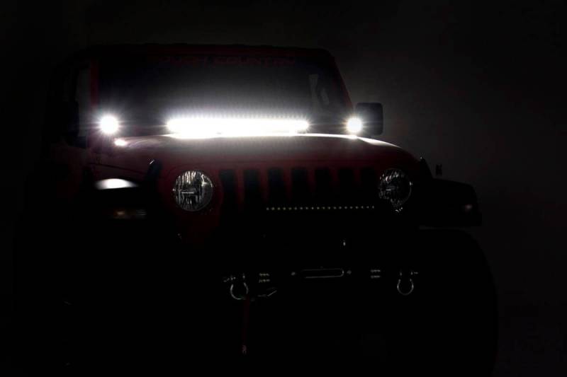 COMMAND THE DARK with Rough Country’s Jeep 2in LED Lower Windshield Kit! This all-inclusive kit comes with everything you need to upgrade your Jeep with a pair of Rough Country’s 2in LED cubes!This setup allows you to run a set of 2in LED cubes at the base of your windshield for a commanding presence and military Jeep feel! The discreet, easy-to-install mounting system allows you to keep the 2in cubes tucked in nicely along the front-end for optimum, forward-facing illumination that doesn’t obscure visibility from inside the cab.Rough Country’s 2in LED Cubes feature an impressive 2,880 lumens and 36 watts of lighting power and is available in your choice of Chrome-Series or Black-Series LED for the style that suits your build the best! Each Rough Country LED light bar is IP67 Waterproof and includes a premium, braided wiring harness with in-line fuse and on/off switch.This easy-to-install kit features a 100% bolt-on installation procedure, with no need for cutting or drilling on your brand new Jeep! Includes Rough Country’s 3-year LED warranty and lifetime mounting bracket warranty!