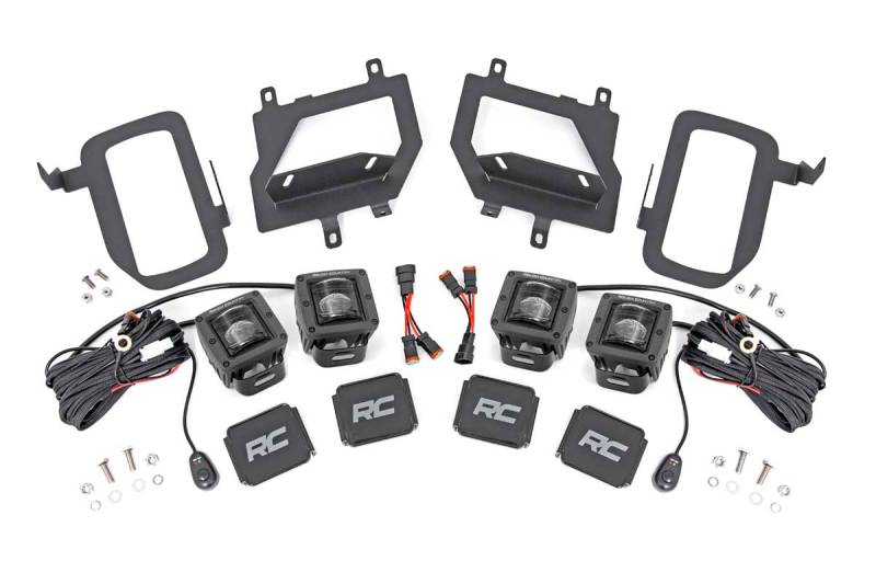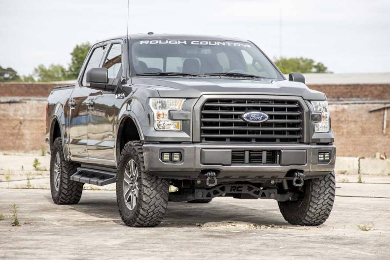 Bring the state-of-the-art power and efficiency of LED lighting to your Ford F-150 factory fog lights with Rough Country's new Quad 2-inch Fog Light LED Kit. This clever LED & mount combo allows you to swap out the factory fog lights with a double set of Rough Country's 2-inch LED Cubes, offering increased illumination and killer, good looks that blend right in with the front-end design.The easy-to-install mounts feature a 100% bolt-on install process and can be performed with common tools in no time flat. Each kit includes a set of wiring adapters that quickly connect to your existing fog light wiring harness for instant installation!\ Each kit also features an optional flat-wound, braided, IP68 waterproof wiring harness with a toggle switch and in-line fuse. Choose between Chrome-Series or Black-Series LEDs to match the look you want! For peace of mind, each LED also includes Rough Country's 3-year Warranty and each mount includes a Lifetime Replacement Warranty.