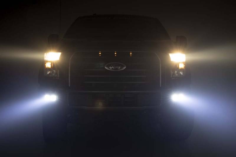 Rough Country Dual 2" LED Pod Fog Light Kit-SAE Flood 15-17 F150 70831