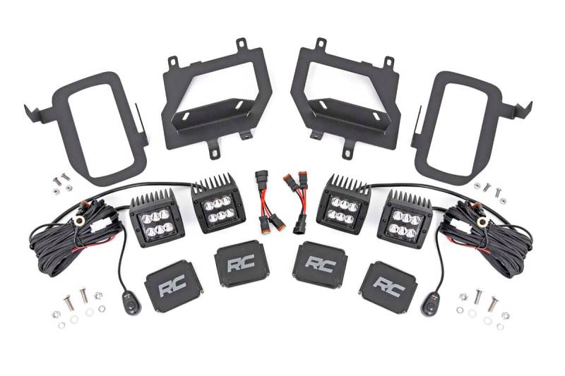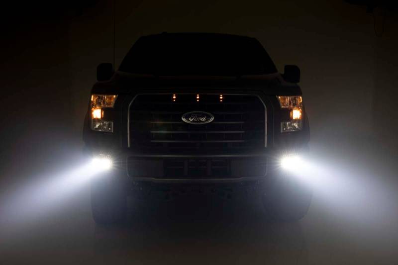 Bring the state-of-the-art power and efficiency of LED lighting to your Ford F-150 factory fog lights with Rough Country's new Quad 2-inch Fog Light LED Kit. This clever LED & mount combo allows you to swap out the factory fog lights with a double set of Rough Country's 2-inch LED Cubes, offering increased illumination and killer, good looks that blend right in with the front-end design.The easy-to-install mounts feature a 100% bolt-on install process and can be performed with common tools in no time flat. Each kit includes a set of wiring adapters that quickly connect to your existing fog light wiring harness for instant installation!\ Each kit also features an optional flat-wound, braided, IP68 waterproof wiring harness with a toggle switch and in-line fuse. Choose between Chrome-Series or Black-Series LEDs to match the look you want! For peace of mind, each LED also includes Rough Country's 3-year Warranty and each mount includes a Lifetime Replacement Warranty.
