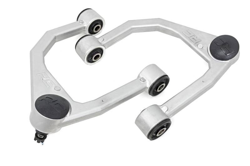 Durable One-Piece Design. Take your truck to the next level with Rough Country's most durable Upper Control Arm to date! Rough Country's Forged Upper Control Arms feature a solid, 1-piece design made of forged aluminum for superior strength and durability. This forged design outperforms all other types of arm construction, with no welding weak spots that could bend or break.\ High Strength Ball Joints. Rough Country's Forged Upper Control Arms use POM ball joints which reduces metal-to-metal contact for less maintenance and longer service life versus standard or OE replacements. These Ball joints feature a POM ball race for an extremely low co-efficient of friction and an oversize ball diameter reduces load and improves range of motion in a fully greaseable design. Rough Country's Forged Upper Control Arms also feature durable rubber bushings rubber bushings for superior quality and durability.\ Installation. Featuring a 100% bolt-on installation process, an estimated timeframe of 3-4 hours is recommended to complete this full installation. This full kit can be installed at home and can be completed efficiently and quickly!\ Limited Lifetime Replacement Warranty. Rough Country's Forged Aluminum Control Arms are backed with a limited lifetime replacement warranty towards manufacturer defects. As such, the product is protected from structural and workmanship damage after the date of purchase. With our industry-leading warranty give yourself peace of mind when using Rough Country's Suspension products!