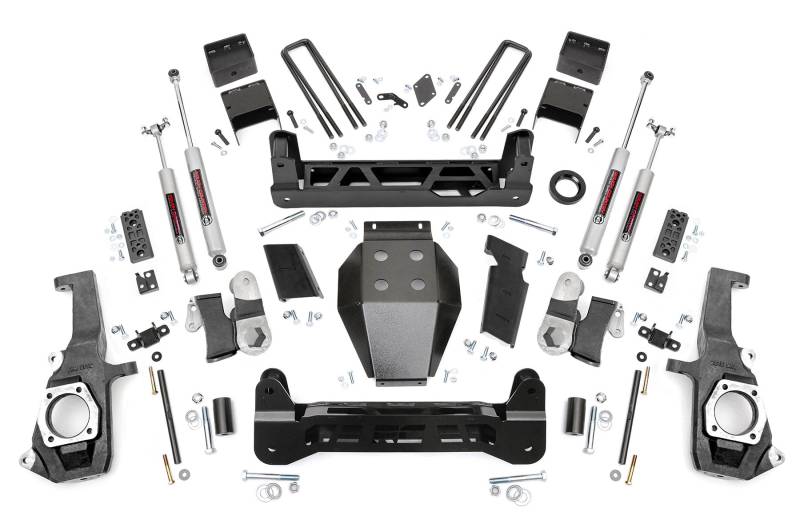 Command Attention from the Start: Right off the lot, the GM 2500/3500HD commands attention with its aggressive stance and sharp style. Rough Country's 7.5" Suspension Lift was engineered to enhance this bold presence while keeping every factory advantage intact. Designed with a Non-Torsion Drop layout, this kit delivers improved ground clearance and handling without compromising your truck's factory angles or axle placement. Built with heavy-duty components, including 1/4" thick steel crossmembers, 1/2" thick NTD brackets, and a rugged skid plate, all laser-cut and finished in durable Hammer Black, this lift offers both strength and style. Installation is straightforward and non-invasive, requiring no drilling or differential modifications, so you can elevate your truck without altering its core mechanics.Ride Smoothly with Factory Precision: Experience a ride that feels as smooth as stock with features engineered to retain factory quality. The Non-Torsion Drop design preserves proper torsion bar placement and stock track width, keeping your wheels aligned and handling predictable. Factory axle positioning is maintained to prevent premature wear, while the kit requires no changes to your drivetrain or exhaust. Fully configurable shock options allow you to dial in your ideal ride, with nitrogen-charged N3 shocks, upgraded M1 or V2 monotubes, or premium Vertex reservoir shocks available to suit your driving style and terrain.Conquer Any Terrain with Confidence: Rough Country's 7.5" Suspension Lift gives your third-generation Chevy/GMC 2500HD/3500HD the perfect balance of aggressive off-road capability and factory-like comfort, letting you tackle tough terrain with confidence and style.