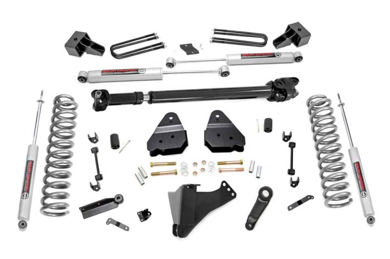 Take your truck to new heights with Rough Country's 4.5-inch Suspension Lift! This all-inclusive kit comes with everything you need for a total trasnformation of your truck. Run up to 37in tires while preserving the smooth, factory ride quality with this impressive upgrade.\ This kit includes a set of lifted coil springs and ultra-durable, fabricated anti-wrap rear blocks that prevent binding and axle wrap. Best of all, this kit comes with your choice of Rough Country's N3, V2 Monotube, or Vertex Adjustable Reservoir shocks! Includes Rough Country's Lifetime Replacement Warranty
