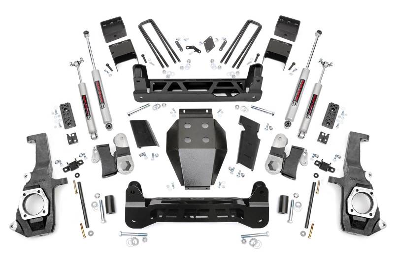 Right off the lot, the GM 2500HD makes a bold statement with its tough stance and aggressive style, so Rough Country engineered a lift kit that adds the performance you need without taking anything away from your truck's factory appeal. The 5-Inch Suspension Lift Kit for the Chevy/GMC 2500HD/3500HD delivers the perfect balance of strength, clearance, and ride quality, all in a design built specifically for heavy-duty demands.Heavy-Duty Strength Built In: This lift is packed with rugged upgrades worthy of the HD badge, including massive 1/4-inch thick steel crossmembers, 1/2-inch NTD brackets, and a thick laser-cut skid plate, all powder-coated in Hammer Black for a clean factory-style finish that resists corrosion and blends seamlessly with your undercarriage.Unmatched Clearance Without Compromise: Featuring Rough Country's innovative Non-Torsion Drop (NTD) design, this kit maximizes ground clearance while keeping torsion bars tucked in their factory location for a sleek, streamlined look. Even better, your axles maintain proper factory position and angle, giving you smooth performance without added strain.Factory Feel, No Modifications Required: This kit preserves the stock track width and requires no drilling, cutting, or differential modifications, so you get showroom-quality handling and ride comfort with the added confidence of a higher stance. No drivetrain or exhaust changes are needed; installation is straightforward and non-invasive.Customizable Ride Performance: Choose the shocks that best fit your driving needs, nitrogen-charged N3 shocks with 10-stage velocity-sensitive valving, performance-driven M1 monotube shocks, upgraded V2 monotubes, or the premium Vertex reservoirs for maximum control and comfort. No matter which you choose, your truck retains its factory ride quality while taking capability to the next level.