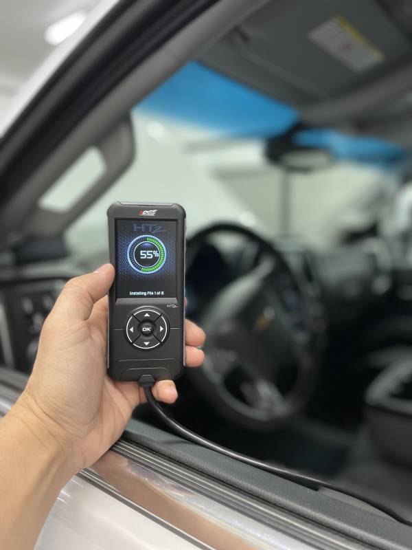 The Edge EvoHT2 Handheld Tuner is the ultimate budget-friendly flash tuner for GM, Ford, and Dodge/RAM gas and diesel trucks. Designed for truck owners who want power, efficiency, and simplicity, the EvoHT2 delivers preloaded performance tunes that maximize horsepower, torque, and fuel economy without complicated installs or costly custom tuning. Simply plug it into your OBD-II port, flash your ECM, and unplug it, then enjoy the gains.\nWith multiple built-in power levels designed specifically for towing, daily driving, fuel economy, and all-out performance, the EvoHT2 gives you the flexibility to tune your truck for any situation. You’ll feel the difference with improved throttle response, optimized transmission shift strategies, and better turbo spool-up for smoother, stronger performance whether you’re towing a heavy trailer or cruising around town.\nThe EvoHT2 also doubles as a powerful diagnostic and monitoring tool. Quickly read and clear DTCs (Diagnostic Trouble Codes) and access real-time performance data right from the easy-to-use handheld device. Backed by Edge Products’ 20+ years of tuning expertise, the EvoHT2 Handheld Tuner is the perfect solution for truck owners who want a reliable, affordable way to enhance performance and efficiency with the convenience of flash tuning technology.\n50 State Legal Gas D-541-9/D-541-17 Diesel D-541-18