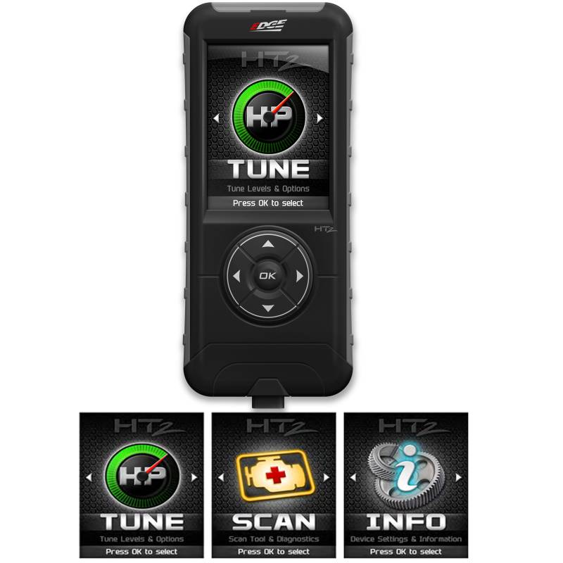 The Edge EvoHT2 Handheld Tuner is the ultimate budget-friendly flash tuner for GM, Ford, and Dodge/RAM gas and diesel trucks. Designed for truck owners who want power, efficiency, and simplicity, the EvoHT2 delivers preloaded performance tunes that maximize horsepower, torque, and fuel economy without complicated installs or costly custom tuning. Simply plug it into your OBD-II port, flash your ECM, and unplug it, then enjoy the gains.\nWith multiple built-in power levels designed specifically for towing, daily driving, fuel economy, and all-out performance, the EvoHT2 gives you the flexibility to tune your truck for any situation. You’ll feel the difference with improved throttle response, optimized transmission shift strategies, and better turbo spool-up for smoother, stronger performance whether you’re towing a heavy trailer or cruising around town.\nThe EvoHT2 also doubles as a powerful diagnostic and monitoring tool. Quickly read and clear DTCs (Diagnostic Trouble Codes) and access real-time performance data right from the easy-to-use handheld device. Backed by Edge Products’ 20+ years of tuning expertise, the EvoHT2 Handheld Tuner is the perfect solution for truck owners who want a reliable, affordable way to enhance performance and efficiency with the convenience of flash tuning technology.\nFor the 50 State Legal for all gas applications 1999-2015 Ford (EO D-541-9) and 1994-2019 Diesel (EO D-541-18) please see part number 86040