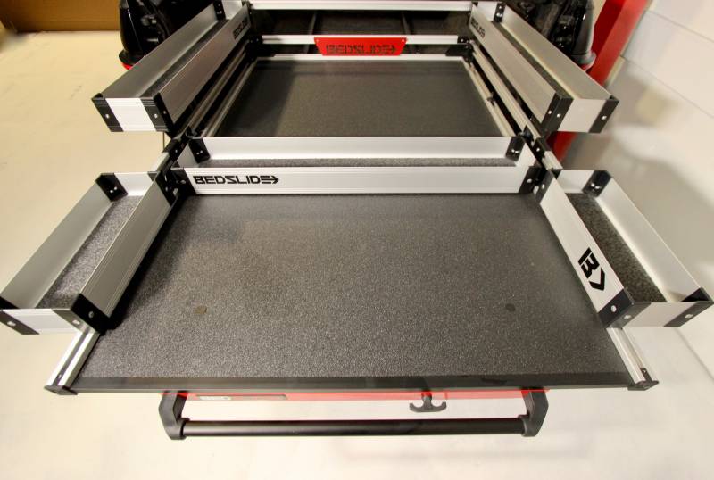 SAVE 10 percent with BedSLIDE BedBIN complete 5pc kit. Includes the side and mini BedBINS and deck divider BedBIN. Maximize the use of space in your truck Bed with over the wheel well and beside the wheel well storage. Made in the USA with high quality products, Aluminum, composite, and all weather soft surface in the bin.