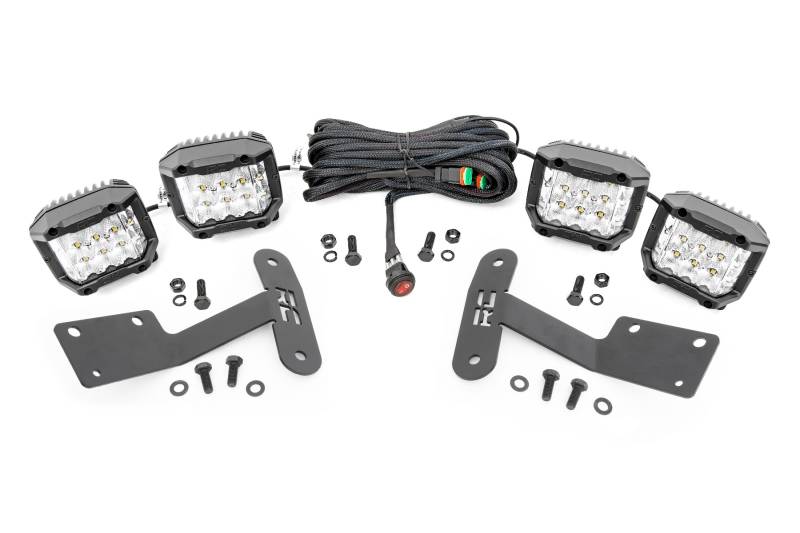 - 100% Bolt-On Installation: Designed specifically for the Toyota Tundra, this ditch light kit features a true bolt-on design that mounts directly to factory locations for a quick, hassle-free installation with no drilling or permanent modifications required.\ Washer Nozzle Friendly Design: Engineered to work seamlessly with your factory hood components, this bracket system does not interfere with the washer nozzle or spray pattern, ensuring full windshield cleaning functionality remains intact.\ Multiple High-Performance Light Options: Customize your setup with multiple LED lighting configurations, allowing you to choose the ideal combination of brightness, beam pattern, and styling to match your driving needs.\ Optional Black Series 2-Inch LED Pods: Available with spot or flood beam patterns, these compact yet powerful pods deliver up to 4,800 lumens (per pair) of output for improved trail visibility and nighttime driving confidence.\ Optional Black Series 2-Inch LED Pods with DRL: Upgrade your lighting with integrated amber or white daytime running light functionality, producing 3,600 (per pair) lumens while adding a modern, aggressive appearance.\ Optional 3-Inch OSRAM LED Light Pods: Equipped with premium OSRAM LEDs producing a massive 13,500 lumens (per pair), these pods offer maximum brightness and long-range visibility for demanding off-road conditions.\ Backed by a 3 Year Warranty: Rough Country quality and peace of mind you can trust..