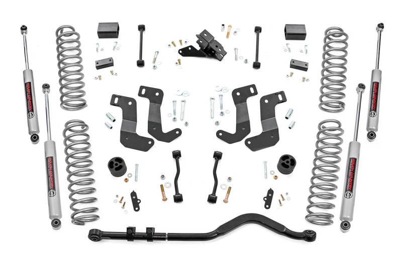 When it comes to your 4-door EcoDiesel Jeep JL, we know you need a lift that won't let you down. Our 3.5 Inch Lift Kit delivers legendary off-road prowess and smooth on-road handling.Increased Ground Clearance: Get ready to conquer those rocky trails and rough terrains like a boss! Our lift kit gives your Jeep Wrangler Unlimited the extra inches it needs to clear obstacles with ease.Front-to-Rear Leveling: Tired of that nose-down stance? Ditch the unbalanced Jeep life with our leveling kit. We bring symmetry to your ride, lifting the front to match the rear, giving you a smooth and steady journey.Tuned Coil Springs for Superior Performance: Your Jeep's handling and ride quality matter, and we get that. Our coil springs come dialed in with OEM spring rates, delivering top-notch handling and a plush ride. Our linear coil rate springs take it up a notch, ensuring impeccable handling and stability, even when the terrain gets wild.Additional Tire Clearance: Who doesn't want bigger, beefier tires? Our lift kit makes room for larger tires (up to 35 inches), giving your Jeep a more aggressive look that will turn heads on and off the road!Heavy-Duty Track Bar: Our included track bar is an absolute beast, constructed from forged solid steel for unparalleled strength and durability. With its massive 1.25-inch outside diameter and rugged OEM-style rubber bushings, it's built to handle anything the off-road throws its way. Easy Installation: We know you'd rather be off-roading than in the garage all day. That's why our lift kit is designed for easy installation, so you can hit the trails in no time.At Rough Country, we understand that no two off-road journeys are the same. That's why our 3.5-inch kit is fully adaptable, allowing you to select your preferred shock series, be it the nitrogen-charged N3 shocks, M1 monotube shocks, or our V2 monotube shocks. With Rough Country, you're not just upgrading your Jeep; you're defining your off-road legacy.