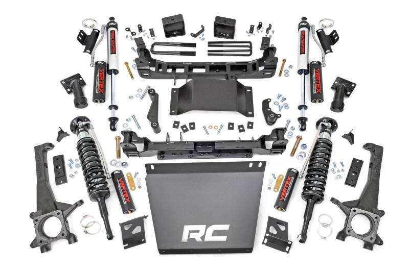 - Boosted Ground Clearance: Achieve a higher ride height for better off-road capability and a more aggressive stance.\ Hassle-Free Installation: No need for strut disassembly or a strut compressor, making setup quick and easy.\ Premium Components: Includes durable lifted knuckles, front and rear crossmembers, and stronger-than-cast fabricated lift blocks for long-lasting performance and reliability.\ Aggressive Look & Performance: Run up to 33 x 12.50 tires while achieving a bold, lifted profile that commands attention.\ Fully Configurable with All Shock/Strut Options: Choose from our nitrogen-charged N3's to the premium Vertex reservoir for the perfect ride quality..
