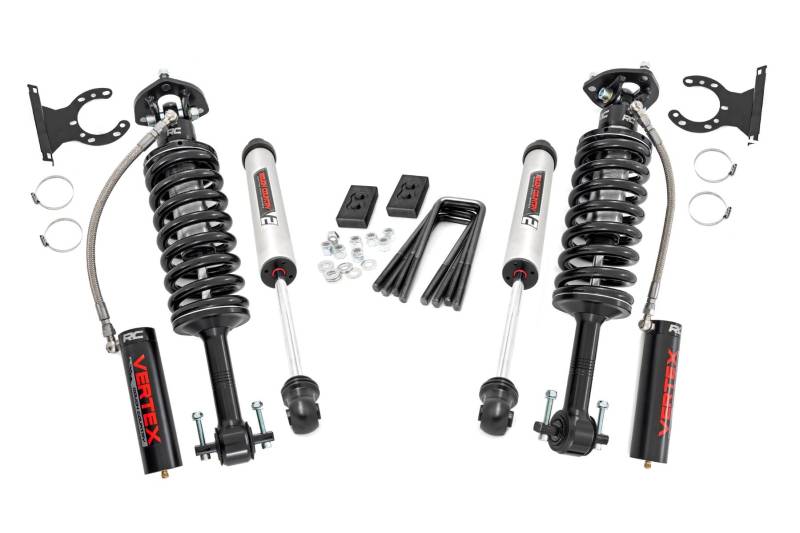 Elevate Your F-150 with Confidence: Rough Country's 2-Inch Lift Kit delivers the perfect blend of bold looks, premium strength, and off-road capability. Gain 2 inches of lift for enhanced clearance while preserving the comfort and stance of your factory ride.Effortless Bolt-On Installation: Get back on the road faster with a 100% bolt-on design that requires no cutting or welding. This kit installs easily with common tools, making it a hassle-free upgrade for weekend wrenchers and pros alike.Smooth OEM Ride Quality: Engineered for comfort, this kit maintains the smooth and responsive factory ride you love. Enjoy improved clearance without sacrificing the feel of your daily drive.Boosted Ground Clearance: Conquer trails, rocks, and rough terrain with added ground clearance. This kit is your gateway to fitting up to 33-inch tires for a tougher, trail-ready look and performance.Balanced Factory Stance: This kit includes a rear lift block to maintain your F-150's factory rake, giving you a level, balanced appearance without compromising the original design.Shock Options Built Around You: Whether you're going with our reliable nitrogen-charged N3 shocks or upgrading to the elite Vertex reservoir setup, this lift kit is fully compatible and ready to match your preferred ride quality.