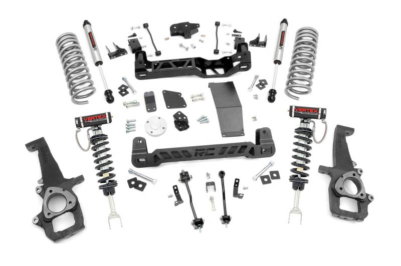 Transform your fourth-generation RAM 1500 with Rough Country's complete 6in Suspension Lift Kit. This all-inclusive system delivers an aggressive, commanding stance that perfectly complements your truck's rugged new design.Preserve Your Smooth Factory Ride: Experience the same comfortable and controlled driving feel you love. Our kit maintains a smooth factory-like ride quality so every journey, on-road or off, is just as comfortable as before.Boost Your Ground Clearance for Ultimate Off-Road Confidence: Gain plenty of added clearance to tackle the toughest trails and obstacles with ease. The 6-inch lift lets you run up to massive 37-inch tires for a bold look and enhanced off-road capability.Achieve a Balanced, Aggressive Stance: Level your RAM's front and rear for a sleek, aggressive profile that turns heads everywhere you go. The kit includes precision-engineered front and rear crossmembers, each laser-cut with the iconic RC logo for a fierce yet streamlined appearance.Optimized Ride Quality with Application-Specific Springs: Enjoy improved handling, ride comfort, and load support thanks to dual-rate rear coil springs (optional upgrade) tailored for your RAM. Whether cruising highways or conquering rocky terrain, this kit adapts seamlessly.Fully Configurable with Premium Shock Options: Customize your ride quality with shock absorbers that match your driving style, from nitrogen-charged N3 shocks for balanced performance to the premium Vertex reservoir shocks for the ultimate ride.Clean Installation with Long-Term Durability: All components are designed with drop brackets and proper geometry to keep your truck looking sharp and functioning flawlessly, no loose parts or unsightly hangers. Backed by Rough Country's Limited Lifetime Replacement Guarantee, this kit is built to last.Upgrade your RAM 1500 with Rough Country's 6in Suspension Lift Kit, dominate the trails, look the part, and drive like a champion every mile of the way.
