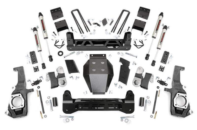 Command Attention from the Start: Right off the lot, the GM 2500/3500HD commands attention with its aggressive stance and sharp style. Rough Country's 7.5" Suspension Lift was engineered to enhance this bold presence while keeping every factory advantage intact. Designed with a Non-Torsion Drop layout, this kit delivers improved ground clearance and handling without compromising your truck's factory angles or axle placement. Built with heavy-duty components, including 1/4" thick steel crossmembers, 1/2" thick NTD brackets, and a rugged skid plate, all laser-cut and finished in durable Hammer Black, this lift offers both strength and style. Installation is straightforward and non-invasive, requiring no drilling or differential modifications, so you can elevate your truck without altering its core mechanics.Ride Smoothly with Factory Precision: Experience a ride that feels as smooth as stock with features engineered to retain factory quality. The Non-Torsion Drop design preserves proper torsion bar placement and stock track width, keeping your wheels aligned and handling predictable. Factory axle positioning is maintained to prevent premature wear, while the kit requires no changes to your drivetrain or exhaust. Fully configurable shock options allow you to dial in your ideal ride, with nitrogen-charged N3 shocks, upgraded M1 or V2 monotubes, or premium Vertex reservoir shocks available to suit your driving style and terrain.Conquer Any Terrain with Confidence: Rough Country's 7.5" Suspension Lift gives your third-generation Chevy/GMC 2500HD/3500HD the perfect balance of aggressive off-road capability and factory-like comfort, letting you tackle tough terrain with confidence and style.