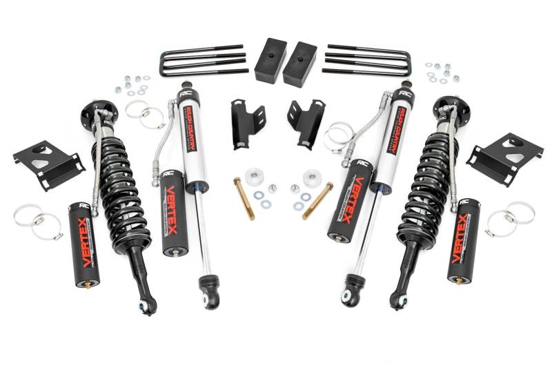 Explore New Heights. If you're looking for not-too-tall and not-too-small, Rough Country's 3" Lifted Strut kit is the perfect option for increased ground clearance and aggressive good looks! This all-inclusive kit features everything you need for a stunning, new appearance and enhanced off-road action, with a host of features designed to promote an incredible suspension geometry and ride quality!Innovative Design and Construction. Rough Country's 3-in lift features a set of application-valved lifted struts to provide optimal ride quality and superior looks! This perfect-height lift is a great choice for anyone who wants more than a simple level but doesn't quite want the full height of a 4 or 6-inch option. This kit lifts and levels the front of the vehicle with the rear, offering enough increased ground clearance to run up to 33" tires with an improved, aggressive look. We didn't want to limit you to one standard kit. Rough Country's 3-inch kit is configurable with all the shock options that we offer. This allows you to choose which shock series you want! Ranging from our nitrogen-charged N3 shocks to our Vertex reservoir shocks the power to choose is in your hands.Installation. Featuring a 100% bolt-on installation process, an estimated timeframe of 2-4 hours is recommended to complete this full installation. This full kit can be installed at home and can be completed efficiently and quickly!Limited Lifetime Replacement Warranty. Rough Country's 3" Suspension Lift Kit is backed with a limited lifetime replacement warranty towards manufacturer defects. As such, the product is protected from structural and workmanship damage after the date of purchase. With our industry-leading warranty give yourself peace of mind when using Rough Country's Suspension products!