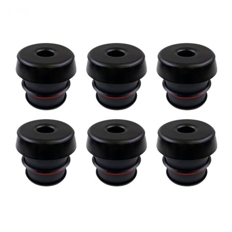 S&B Body Mounts are made from premium silicone, so they won't deteriorate like stock rubber does. Silicone resists heat and ozone and will last the lifetime of your truck which is why we give a lifetime guarantee. Locks into the vehicles mounting frame and prevents the body mount from spinning when tightening bolts, making for an easier installation. New steel caps come standard and are specially coated to resist rust build up. All S&B Body Mount kits come with OEM designed bolts.