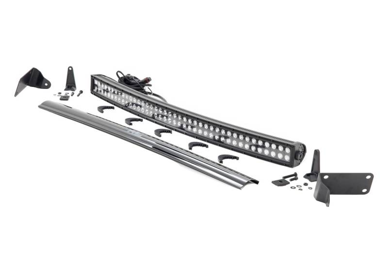 - Easy bolt-on install\ Factory appearance\ Brackets mount hidden away from view\ Compatible with both Single-Row and Dual-Row LED Light Bars\ Compatible with Rough Country 40-inch Curved Dual Row LED Light Bar Kit (72940)\ Designed to work with light bars with 8mm mounting posts\ Designed to work with light bars measuring 42 3/16-inches from mounting point to mounting point.