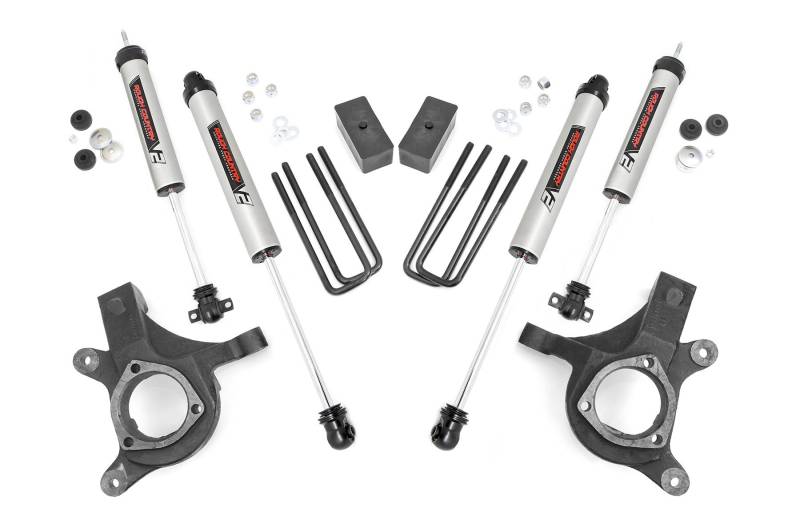 Aggressive Stance & Added Clearance: Level out your ride and eliminate factory rake with this complete lift kit. Front lifted knuckles and rear lift blocks deliver a bold, leveled look while clearing room for up to 31" tires.Off-Road Ready Performance: Boost ground clearance and tackle tough terrain with confidence. This kit is built to handle off-road abuse while preserving your vehicle's factory ride quality. Easy Bolt-On Installation: No cutting, no welding. The hassle-free, bolt-on design ensures a straightforward install with no modifications required.Ride Quality You Can Feel: This kit includes front and rear N3 shock absorbers featuring 10-stage velocity-sensitive valving. Specifically tuned for GM 1500 models, these nitrogen-charged shocks maintain a smooth, stock-like ride on pavement while offering responsive performance off-road.Customizable Shock Options: Want to fine-tune your ride? Upgrade to V2 Monotube or M1 Monotube shocks for even greater performance and control because the power to customize your ride is in your hands.