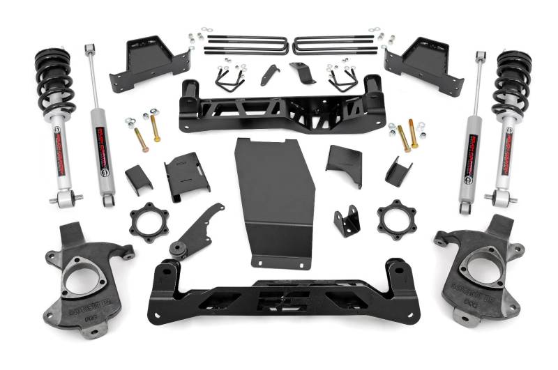Level Up Your Stance and Style: Transform your Chevy or GMC 1500 with Rough Country's 6-Inch Lift Kit-engineered to eliminate factory rake and deliver a bold, level, and aggressive appearance. This kit supports 33-inch tires on factory 20-inch wheels, so you can keep your OE styling while gaining serious off-road presence. The high-clearance crossmember design boosts ground clearance, ensuring you're ready for rugged terrain without compromising ride quality. Engineered for Strength and Precision: Every component in this lift kit is crafted for top-tier durability and performance. Heavy-duty fabricated lift blocks outlast cast versions, while anti-axle wrap rear blocks help maintain factory ride comfort and prevent axle wrap under load. All suspension parts are precision laser-cut using advanced CAD technology for a perfect, factory-style fit. Choose between our nitrogen-charged N3 shocks or the M1 Monotubes to customize your ride experience. Everything You Need in One Kit: This all-inclusive lift kit comes complete with detailed instructions and all required hardware for a straightforward installation. Some cutting and drilling may be necessary, but we've made sure the process is as smooth as possible. Backed by Rough Country's Limited Lifetime Warranty, your investment is protected mile after mile. Take your truck's capability and stance to the next level today.