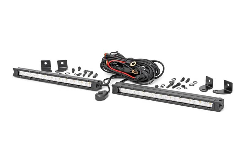 Unleash the Power of Light with Rough Country's 10-Inch Slimline CREE LED Light Bar pair. For those who demand performance and style, the Rough Country Slimline Light Bar delivers unmatched brilliance and reliability. Featuring 8,000 lumens of pure power and 20 high-intensity 5-watt CREE LEDs, these light bars transforms darkness into daylight.With its 90-degree flood pattern, you'll enjoy wide, even light distribution perfect for off-road adventures, worksite visibility, or nighttime exploration. Built to withstand the elements, it boasts a rugged IP67 waterproof rating and durable die-cast aluminum housing for optimal strength and heat dissipation. Plus, Moisture Breather technology prevents lens fogging, ensuring clear, consistent performance every time.Installation is a breeze with the included premium flat-wound wiring harness and on/off switch, so you can hit the trails in no time.