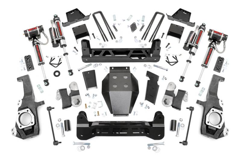 Transform Your HD With Confidence: Upgrade your fourth or fifth-generation Chevy/GMC 2500HD/3500HD with Rough Country's 7-Inch Non-Torsion Drop Suspension Lift Kit. This high-clearance system adds serious attitude and off-road capability to your truck, delivering the height you need to run 37-inch tires, all while maintaining a clean, integrated factory look underneath thanks to its non-torsion drop design.Engineered for a Sleek, Factory-Fit Appearance: Unlike traditional kits that leave torsion bars hanging low and exposed, Rough Country's innovative non-torsion drop design keeps everything tucked up and streamlined. You'll enjoy unmatched ground clearance and a sharp, OEM-style appearance that complements the aggressive stance of your HD truck.Built for Strength and Precision: The kit includes rugged, laser-cut front and rear crossmembers crafted from durable steel for a precise, bolt-on fit. The signature "RC" logo adds a bold touch up front, while the heavy-duty differential skid plate offers extra protection during off-road adventures. Lifted knuckles, rear anti-wrap blocks, and a range of premium shock options, like Rough Country's nitrogen-charged N3s or the high-performance Vertex reservoir, ensure you get the ride feel and handling you demand.Ride Quality You Can Rely On: This lift system retains factory ride comfort and control, keeps axle geometry true to spec, and preserves OEM track width. No drivetrain modifications or differential drilling required, just a clean install and predictable performance, mile after mile.Backed by Rough Country's Limited Lifetime Replacement Guarantee: Drive with peace of mind knowing your lift kit is covered for the long haul.