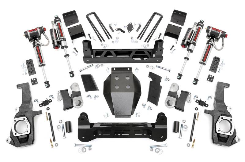 Right off the lot, the GM 2500HD makes a bold statement with its tough stance and aggressive style, so Rough Country engineered a lift kit that adds the performance you need without taking anything away from your truck's factory appeal. The 5-Inch Suspension Lift Kit for the Chevy/GMC 2500HD/3500HD delivers the perfect balance of strength, clearance, and ride quality, all in a design built specifically for heavy-duty demands.Heavy-Duty Strength Built In: This lift is packed with rugged upgrades worthy of the HD badge, including massive 1/4-inch thick steel crossmembers, 1/2-inch NTD brackets, and a thick laser-cut skid plate, all powder-coated in Hammer Black for a clean factory-style finish that resists corrosion and blends seamlessly with your undercarriage.Unmatched Clearance Without Compromise: Featuring Rough Country's innovative Non-Torsion Drop (NTD) design, this kit maximizes ground clearance while keeping torsion bars tucked in their factory location for a sleek, streamlined look. Even better, your axles maintain proper factory position and angle, giving you smooth performance without added strain.Factory Feel, No Modifications Required: This kit preserves the stock track width and requires no drilling, cutting, or differential modifications, so you get showroom-quality handling and ride comfort with the added confidence of a higher stance. No drivetrain or exhaust changes are needed; installation is straightforward and non-invasive.Customizable Ride Performance: Choose the shocks that best fit your driving needs, nitrogen-charged N3 shocks with 10-stage velocity-sensitive valving, performance-driven M1 monotube shocks, upgraded V2 monotubes, or the premium Vertex reservoirs for maximum control and comfort. No matter which you choose, your truck retains its factory ride quality while taking capability to the next level.