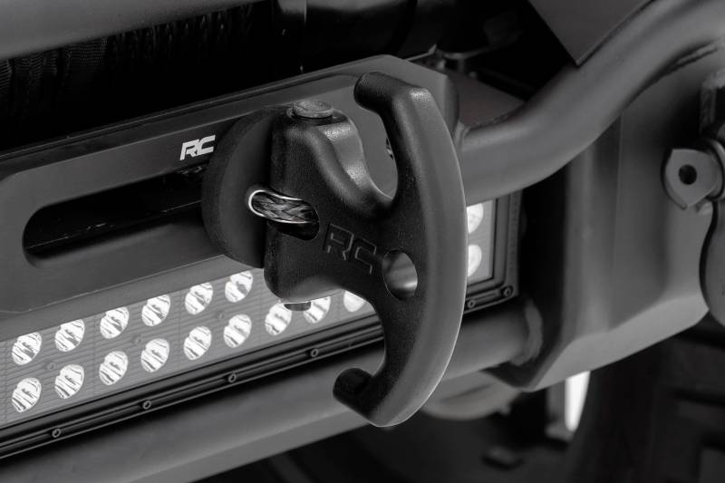 Complete any winch set up by replacing your standard winch hook with Rough Country's stylized forged aluminum Multi-Function Winch Cleat. This cutting edge design provides multiple options for recovery and safety when it comes to conquering the trails.\ Recovery situations may not always call for the same tools to complete the job. With a max load rating of 15,000lbs, and it being designed to use with both steel cables and synthetic winch ropes. Our multi hook will provide the safest and strongest means to get back your vehicle back on the beaten path. It can be purposed as, or accommodate a D-ring, and works with soft shackles/tree savers for when you need to winch from a variety of anchor points.\ No matter what the situation on the trail calls for, Rough Country's forged aluminum Multi-Function Winch Cleat is the accessory you need to complete your off-road recovery kit.