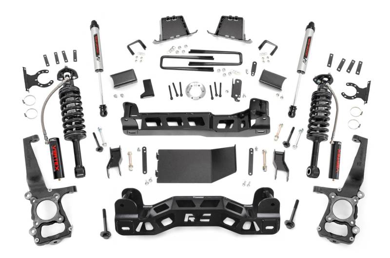 Commanding Lift, Premium Ride: Transform the look and capability of your 2009-2010 Ford F-150 with Rough Country's 6-Inch Lift Kit. Engineered to deliver a bold, leveled stance, this kit not only increases ground clearance for rugged off-road performance but also makes room for larger tires and wheels. Whether you're cruising the highway or tackling backcountry trails, enjoy a smooth, confident ride with enhanced control and presence.Engineered for Strength and Stability: Built for serious performance, this kit features heavy-duty lifted knuckles, durable strut spacers, or your choice of lifted struts, all designed to maintain proper suspension geometry. Differential and sway-bar drop brackets, along with brake line extensions and a driveshaft spacer, ensure everything stays at factory-like angles. Massive 1/4-inch thick front and rear crossmembers offer uncompromised strength, laser-cut with the RC logo for a clean, aggressive look.Advanced Rear Block Design: Rough Country's 4.5-inch fabricated rear blocks are stronger and longer-lasting than traditional cast versions. Specially engineered anti-axle wrap blocks eliminate common lift-related issues while maintaining stock ride comfort. You get durability and drivability in one rugged package.Tailored Ride Performance: This kit includes Rough Country's premium N3 shocks-10-stage variable valving, nitrogen-charged for the perfect fusion of off-road performance and on-road comfort. Want more? It's fully configurable with Rough Country's full lineup of shocks and struts, including the high-performance Vertex reservoir upgrade.Limited Lifetime Replacement Warranty. Rough Country's 6" Lift Kit is backed with a limited lifetime replacement warranty for manufacturer defects. As such, the product is protected from structural and workmanship damage after the date of purchase. With our industry-leading warranty, give yourself peace of mind when using Rough Country's Suspension products!