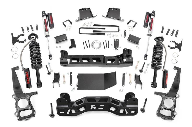 Commanding Lift, Premium Ride: Transform the look and capability of your 2009-2010 Ford F-150 with Rough Country's 6-Inch Lift Kit. Engineered to deliver a bold, leveled stance, this kit not only increases ground clearance for rugged off-road performance but also makes room for larger tires and wheels. Whether you're cruising the highway or tackling backcountry trails, enjoy a smooth, confident ride with enhanced control and presence.Engineered for Strength and Stability: Built for serious performance, this kit features heavy-duty lifted knuckles, durable strut spacers, or your choice of lifted struts, all designed to maintain proper suspension geometry. Differential and sway-bar drop brackets, along with brake line extensions and a driveshaft spacer, ensure everything stays at factory-like angles. Massive 1/4-inch thick front and rear crossmembers offer uncompromised strength, laser-cut with the RC logo for a clean, aggressive look.Advanced Rear Block Design: Rough Country's 4.5-inch fabricated rear blocks are stronger and longer-lasting than traditional cast versions. Specially engineered anti-axle wrap blocks eliminate common lift-related issues while maintaining stock ride comfort. You get durability and drivability in one rugged package.Tailored Ride Performance: This kit includes Rough Country's premium N3 shocks-10-stage variable valving, nitrogen-charged for the perfect fusion of off-road performance and on-road comfort. Want more? It's fully configurable with Rough Country's full lineup of shocks and struts, including the high-performance Vertex reservoir upgrade.Limited Lifetime Replacement Warranty. Rough Country's 6" Lift Kit is backed with a limited lifetime replacement warranty for manufacturer defects. As such, the product is protected from structural and workmanship damage after the date of purchase. With our industry-leading warranty, give yourself peace of mind when using Rough Country's Suspension products!