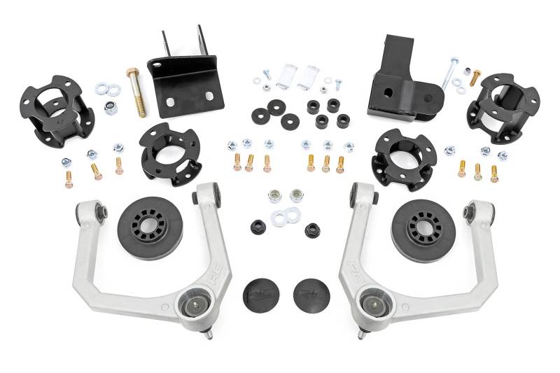 Improved Ground Clearance and Ride Quality: The Ford Bronco is back and ready for adventure! Rough CountryΓÇÖs 3.5-inch Suspension Lift Kit gives your Ford Bronco a bold, aggressive stance while improving ground clearance for larger tires. This kit eliminates the factory nose-down look, ensuring a level, commanding presence on and off the road - all without sacrificing ride quality.Innovative Design and High-Performance Construction: Built for durability and performance, this lift kit features lightweight yet strong aluminum upper control arms that optimize ball joint angles and suspension geometry. Greaseable high-angle ball joints provide smoother operation and longevity, while differential spacers help maintain proper CV angles. The heavy-duty upper strut spacers add uncompromised strength, ensuring reliable lift height. Completing the system, the rear track bar and brake line relocation brackets retain factory-like suspension geometry - allowing clearance for 35" tires with no additional modifications. For those looking to take performance even further, this kit offers an optional upgrade to Rough CountryΓÇÖs premium M1R reservoir struts, providing superior dampening and ride control for the toughest terrain.Hassle-Free Installation: Designed for efficiency, this kit can be installed at home with basic tools. While minor cutting and a strut compressor are required, the entire process takes approximately 3-5 hours for a straightforward, bolt-on upgrade.Limited Lifetime Replacement Warranty: Rough Country backs this 3.5" Suspension Lift Kit with a limited lifetime replacement warranty against manufacturer defects. Drive with confidence knowing your suspension is protected for the long haul with industry-leading durability and reliability.
