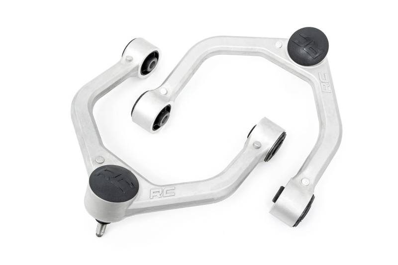 Durable One-Piece Design. Take your truck to the next level with Rough Country's most durable Upper Control Arm to date! Rough Country's Forged Upper Control Arms feature a solid, 1-piece design made of forged aluminum for superior strength and durability. This forged design outperforms all other types of arm construction, with no welding weak spots that could bend or break.\ High Strength Ball Joints. Rough Country's Forged Upper Control Arms use POM ball joints which reduces metal-to-metal contact for less maintenance and longer service life versus standard or OE replacements. These Ball joints feature a POM ball race for an extremely low co-efficient of friction and an oversize ball diameter reduces load and improves range of motion in a fully greaseable design. Rough Country's Forged Upper Control Arms also feature durable rubber bushings rubber bushings for superior quality and durability.\ Installation. Featuring a 100% bolt-on installation process, an estimated timeframe of 3-4 hours is recommended to complete this full installation. This full kit can be installed at home and can be completed efficiently and quickly!\ Limited Lifetime Replacement Warranty. Rough Country's Forged Aluminum Control Arms are backed with a limited lifetime replacement warranty towards manufacturer defects. As such, the product is protected from structural and workmanship damage after the date of purchase. With our industry-leading warranty give yourself peace of mind when using Rough Country's Suspension products!