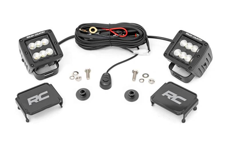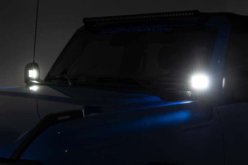 Rough Country's LED Ditch Lights for the Ford Bronco bring powerful side visibility to your off-road experience. Safely navigate the trails after dark, enhancing your safety and awareness without compromising the aesthetic of your vehicle.Customize Your Lighting Experience: Choose from a variety of lighting options to suit your needs! Rough Country's LED Ditch Lights for the Ford Bronco are available with the Black Series, Spectrum Series, OSRAM, Amber Lens, or DRL LED options, so you can tailor the setup to match your style and performance requirements. Whether you need a bold, sleek look or enhanced visibility in low-light conditions, there's a perfect option for every off-road enthusiast.Weather-Resistant Performance: Built with an IP67 waterproof rating, these LED lights are ready for any weather condition, offering reliable performance even in the harshest environments.Rugged and Durable Construction: The die-cast aluminum housing ensures long-lasting durability and superior protection against wear and impact, while the moisture breather technology keeps your lights clear and bright for longer.Complete Lighting Kit: Each kit includes a premium, flat-wound wiring harness with an on/off switch, offering ease of use and quality you can depend on. Heavy-duty 11 gauge steel brackets ensure solid, long-term support for your lights.Quick and Easy Installation: Enjoy a smooth installation process with minimal drilling required. This kit offers a seamless fit with only slight modifications needed to ensure it integrates perfectly with your vehicle. Engineered for Adventure: Whether you're cruising off-road at night or navigating through rough terrain, Rough Country's LED Ditch Lights for the Ford Bronco give you the confidence to conquer any adventure with clarity and style.