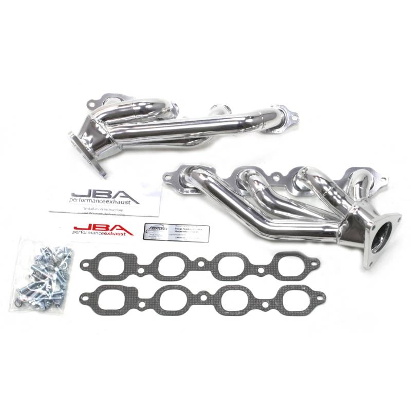 JBA shorty headers are one of the foremost performance upgrades you can bestow upon your beloved car, truck, or SUV. JBA Headers are significantly less restrictive than stock manifolds and dramatically increase the power and efficiency of your engine. Each header is constructed from durable stainless steel to endure the abuse of racing, towing, and daily driving – built to wit'stand it all. JBA’s proprietary Firecone collector design uses race proven technology for producing maximum power and torque gains where you drive most. Each system includes factory style emission connections and high-quality hardware for a professional no-leak installation.