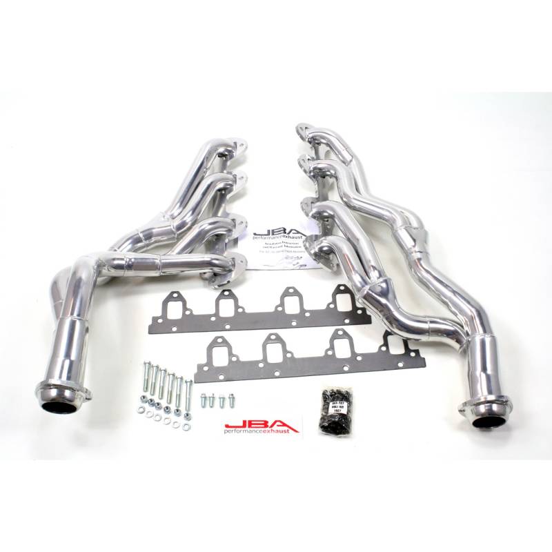 JBA long tube headers are the number one choice for maximum performance gains and high RPM efficiency. Available in 409 or 304 Series Stainless Steel. These long tube designs are dyno and race proven to deliver the greatest possible increase in horsepower and torque throughout the RPM range. All JBA long tube headers feature large mandrel-bent stainless steel primary tubes, oversized exhaust ports, extra thick 3/8 one-piece flanges, and proprietary JBA Firecone® merged collectors for smooth flow. Each system is designed to give the maximum amount of ground clearance possible, so lowered cars do not drag the collectors.\n304 Series Stainless Steel headers are built to endure the harshest of environments, ensuring your investment stands the test of time. These headers are embellished with 304 flanges, longer, smoother 304 merged collectors and 304 primary tubing. Our proprietary JBA Firecone has been extended with a longer concave design within the collector for optimal flow. Available in natural finish or a meticulously hand polished mirror finish.\nEach system includes high quality hardware and thorough instructions for a professional no-leak installation. For closed course competition use only.