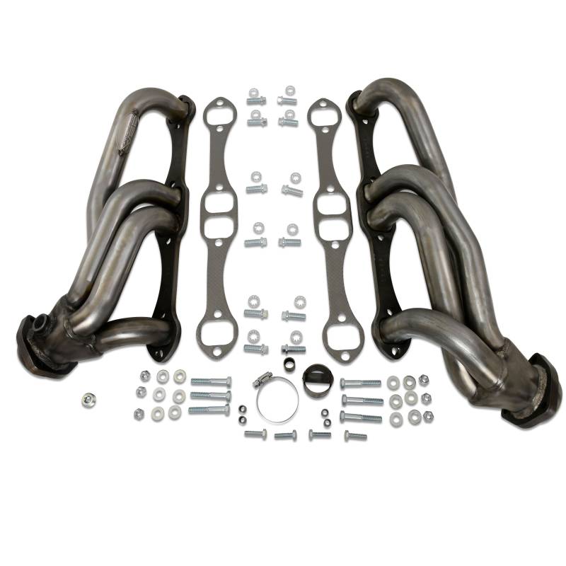JBA shorty headers are one of the foremost performance upgrades you can bestow upon your beloved car, truck, or SUV. JBA Headers are significantly less restrictive than stock manifolds and dramatically increase the power and efficiency of your engine. Each header is constructed from durable stainless steel to endure the abuse of racing, towing, and daily driving – built to withstand it all. JBA’s proprietary Firecone collector design uses race proven technology for producing maximum power and torque gains where you drive most. Each system includes factory style emission connections and high-quality hardware for a professional no-leak installation.