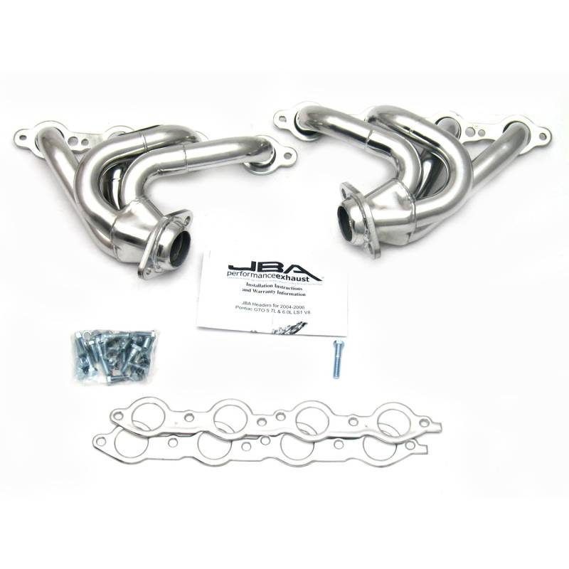 JBA shorty headers are one of the foremost performance upgrades you can bestow upon your beloved car, truck, or SUV. JBA Headers are significantly less restrictive than stock manifolds and dramatically increase the power and efficiency of your engine. Each header is constructed from durable stainless steel to endure the abuse of racing, towing, and daily driving – built to withstand it all. JBA’s proprietary Firecone collector design uses race proven technology for producing maximum power and torque gains where you drive most. Each system includes factory style emission connections and high-quality hardware for a professional no-leak installation.