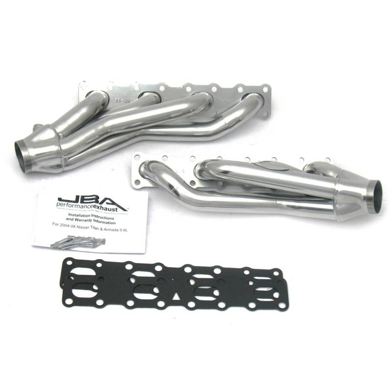 JBA shorty headers are one of the foremost performance upgrades you can bestow upon your beloved car, truck, or SUV. JBA Headers are significantly less restrictive than stock manifolds and dramatically increase the power and efficiency of your engine. Each header is constructed from durable stainless steel to endure the abuse of racing, towing, and daily driving – built to wit'stand it all. JBA’s proprietary Firecone collector design uses race proven technology for producing maximum power and torque gains where you drive most. Each system includes factory style emission connections and high-quality hardware for a professional no-leak installation.