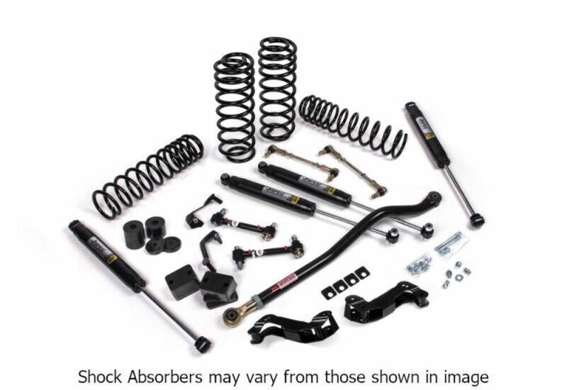 J-Kontrol 2.5" Lift Kit Improve the ground clearance and off road capability of your Diesel 4 Door Jeep Wrangler JL with the JKS J-Kontrol 2.5" lift kit. The J-Kontrol lift retains your OE control arms, but steps up the rest of your suspension. J-Kontrol kits feature Diesel specific dual rate coil springs, adjustable front track bars specially-valved gas shocks, sway bar Quicker Disconnects, and front control arm correction brackets as well as all other hardware to complete the 2.5" lift. The J-Kontrol 2.5" lift suspension kit is the perfect daily driver, weekend wheeler system. J-Kontrol system's front control arm correction brackets further enhance the on-road handling by flattening out the control arm to more closely mimic factory angles while correcting caster. With a matched combination of parts, J-Kontrol systems offer very solid performance without compromising daily-driver comfort. If you spend a good amount of time on the trails, take control with J-Kontrol. Front/Rear Dual Rate Coil Springs designed for the Diesel to provide great ride quality across any terrain Front/Rear JSPEC Gas Shocks specifically valved for this suspension system for improved performance on and off-road Front Adjustable Track Bar and Rear Track Bar Bracket to correct axle positioning under vehicle Front Sway Bar Quicker Disconnects and Rear Sway Bar Links for increased offroad articulation Front/Rear Bump Stop Extensions to properly limit suspension up travel