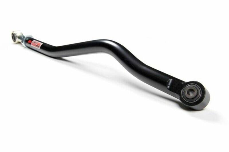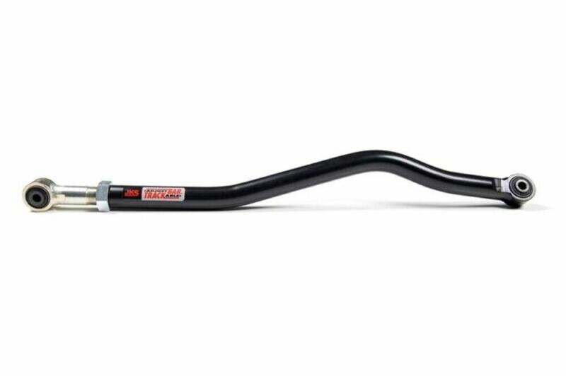 Front Adjustable Track Bar JKS adjustable front track bar for RHD Jeep Wrangler JK provides added strength and adjustability. Fine tune track bar length to suit your combination of suspension components and ride height. Features precision 1-1/4" fine threads, 3/8"- wall 1.5" diameter DOM CNC-bent tubing and powder coated and zinc finish. Heavy duty rubber bushings at both ends provide quiet, vibration-free operation. Fits right hand drive JK only with up to 6" lift. Bolt-on installation. Engineered Specifically for Right Hand Drive Jeep Wrangler JK 1-1/4" fine adjustment threads enable ultra precise axle positioning This new adjustable track bar will work on Wrangler RHD models from stock height to 6" of lift and can be adjusted to match the stock track bar length Variable length design properly aligns axle housing with chassis and prevents undue stress on related components Extremely strong heavy-wall DOM tube construction utilizes OE bends for correct geometry and clearance